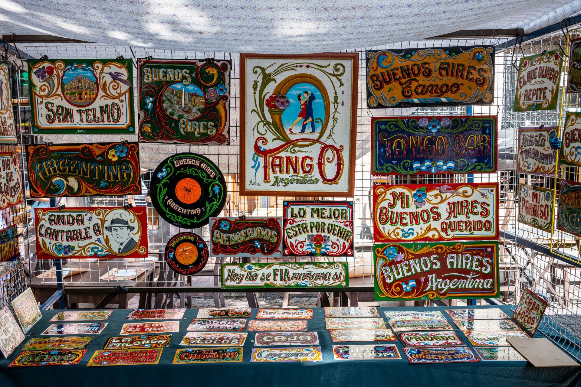 - The Sunday fair spans over 15 blocks of artisans, artists and street performers. You can even find authentic pieces of fileteado porteño, the traditional lettering of Buenos Aires. After the fair finishes, groups of candombe music take over the streets, filling the streets of San Telmo with the echo of their drumming.